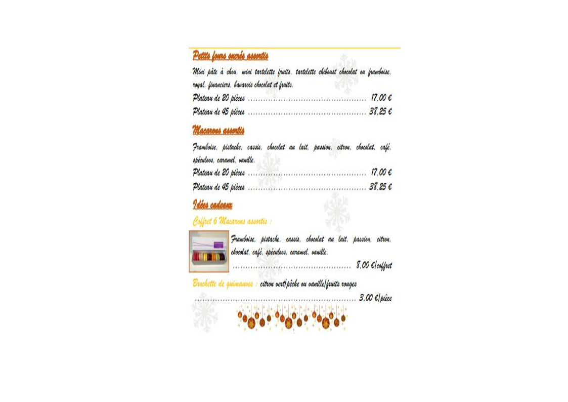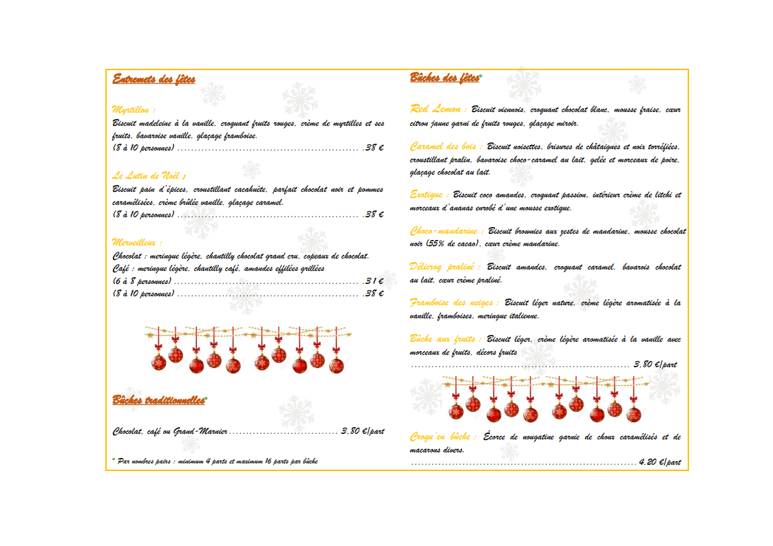 Aucun article défini dans la catégorie "Alimentation / Carte des pâtisseries menu des fêtes".
